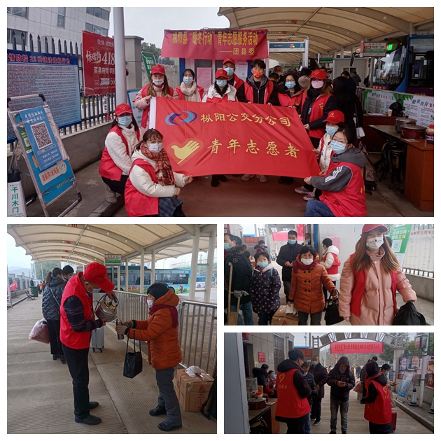隨著春節(jié)的臨近,返鄉(xiāng)回樅的旅客越來(lái)越多,安全出行,疫情防控等工作壓力增大。樅陽(yáng)公交分公司與樅陽(yáng)縣共青團(tuán)委主動(dòng)對(duì)接,組織聯(lián)合志愿者協(xié)助春運(yùn)工作。志愿者們有的在路口勸導(dǎo)違規(guī)停車(chē),有的在進(jìn)站口維護(hù)秩序,有的在卡口協(xié)助查驗(yàn)健康碼,有的幫助乘客搬運(yùn)行李,給有需要的乘客和司機(jī)送茶水。他們穿梭在人群中,服務(wù)在公交站臺(tái)的各個(gè)場(chǎng)景,熱情的服務(wù)給寒冬出行的人們帶來(lái)溫暖。