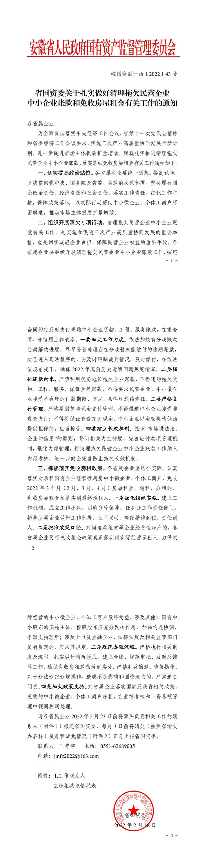 省國資委關(guān)于扎實做好清理拖欠民營企業(yè)中小企業(yè)賬款和免收房屋租金有關(guān)工作的通知