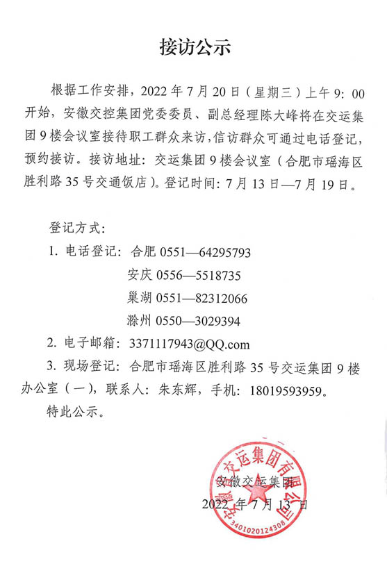 交控領(lǐng)導(dǎo)接訪(fǎng)告示