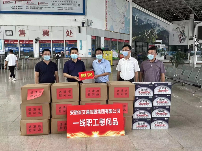 炎炎夏日,酷暑難當(dāng)。7月20日下午,省交控集團(tuán)黨委委員、紀(jì)委書(shū)記、監(jiān)察專員魏發(fā)斌,紀(jì)委副書(shū)記、監(jiān)察室主任程光遠(yuǎn)在省交運(yùn)集團(tuán)領(lǐng)導(dǎo)楊紅兵、許占礦,安慶汽運(yùn)公司領(lǐng)導(dǎo)王中明、蔡烈焰的陪同下來(lái)到安慶公路客運(yùn)中心站,看望慰問(wèn)奮戰(zhàn)在高溫酷暑中的一線工作人員,并為他們送去飲料、礦泉水等防暑降溫慰問(wèn)品。