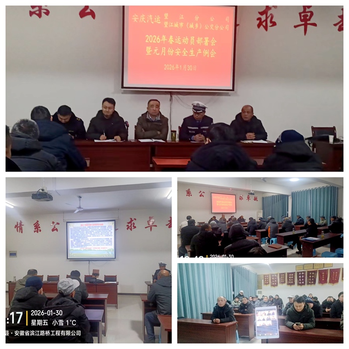 為保障春運(yùn)期間道路運(yùn)輸安全,1月30日晚,望江城市(城鄉(xiāng))公交分公司召開2026年春運(yùn)動(dòng)員部署會(huì)暨元月份安全生產(chǎn)例會(huì)。望江縣道路運(yùn)輸管理服務(wù)中心、縣交警大隊(duì)蒞臨指導(dǎo)會(huì)議。考慮到鄉(xiāng)鎮(zhèn)駐點(diǎn)駕駛員的實(shí)際,會(huì)議創(chuàng)新采用微信視頻群聊方式,確保了全司60余名駕駛?cè)、安全員等“面對(duì)面”參會(huì),實(shí)現(xiàn)培訓(xùn)全面覆蓋。